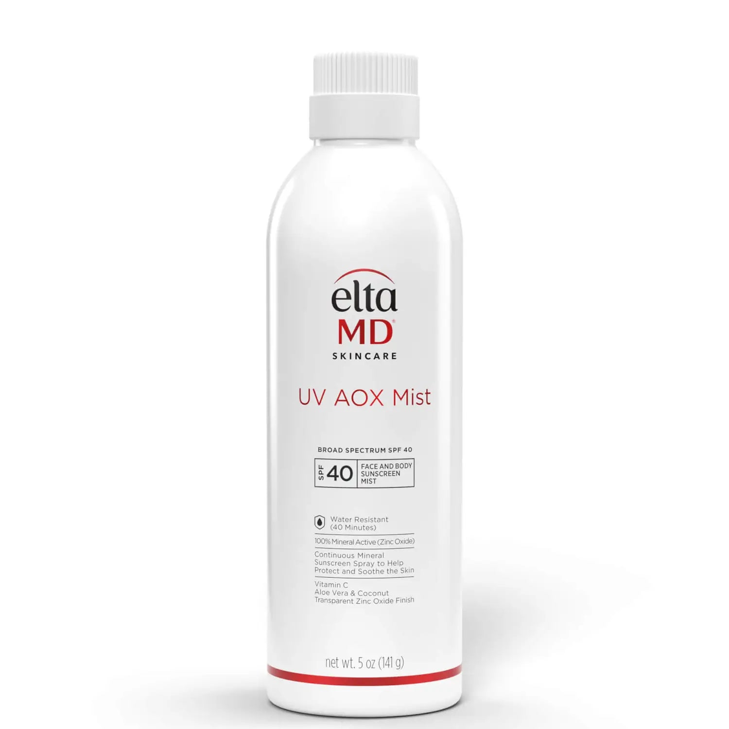 Enjoy a reimagined sunscreen spray experience with EltaMD UV AOX Mist SPF 40 - a sheer-finish 100% mineral sunscreen spray that's enriched with antioxidants to help prevent premature aging and rejuvenate skin. This lightweight and water-resistant formula is gentle enough to wear daily and leaves skin feeling hydrated and moisturized. With our white-to-clear technology, the only time you see the sunscreen is when you're spraying it on (so you don't miss a spot!). It conveniently absorbs into the skin within seconds and blends flawlessly into all skin types - no streaks, patches or white cast in sight. Its air-powered technology removes the need for chemical propellants, and features 360-degree sprayability for easy application from any angle - even upside down for hard-to-reach places, like the nape of your neck or in between your shoulder blades.